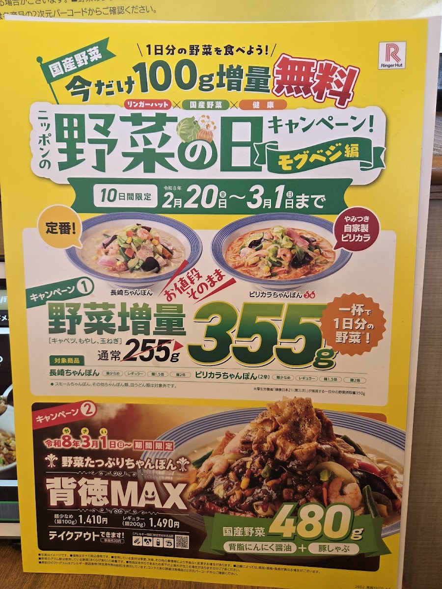 The menu at Ringer Hut Isahaya By-Pass offers a delightful array of traditional Japanese dishes, perfect for those seeking a comforting meal. The standout dish is the 長崎ちゃんぽん (Nagasaki Champon), a hearty noodle soup that captures the essence of the region with its rich broth, fresh vegetables, and tender seafood. If you're in the mood for something to accompany your meal, their ぎょうざ(5個) (Gyoza, 5 pieces) is a popular choice, featuring crispy, flavorful dumplings that complement the soup perfectly. The restaurant’s menu delivers both variety and quality, offering classic dishes that showcase the best of Nagasaki’s culinary traditions.